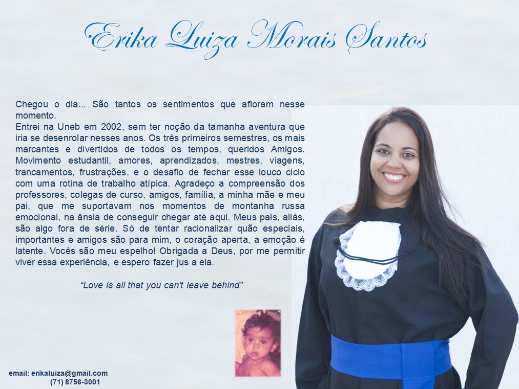 Na UNEB desde 2002.1, turma que tinha entre outros queridos: Ida Mariama, Manuela Coelho, Gustavo Candota, Viviane Santos, Patricia Figueiredo e outros desgarrados (UFBA).